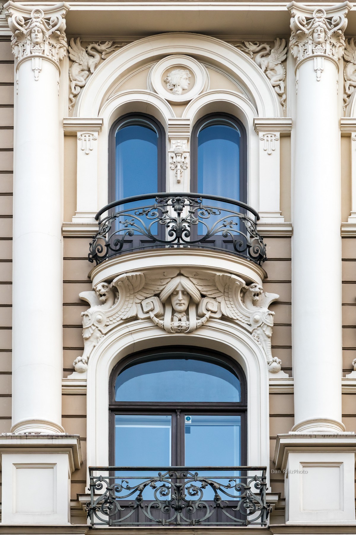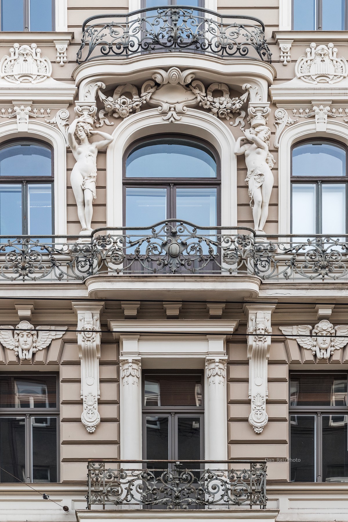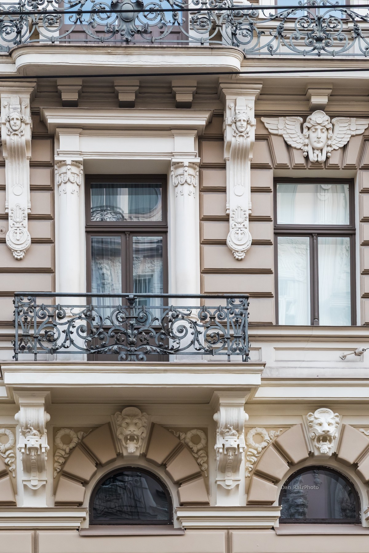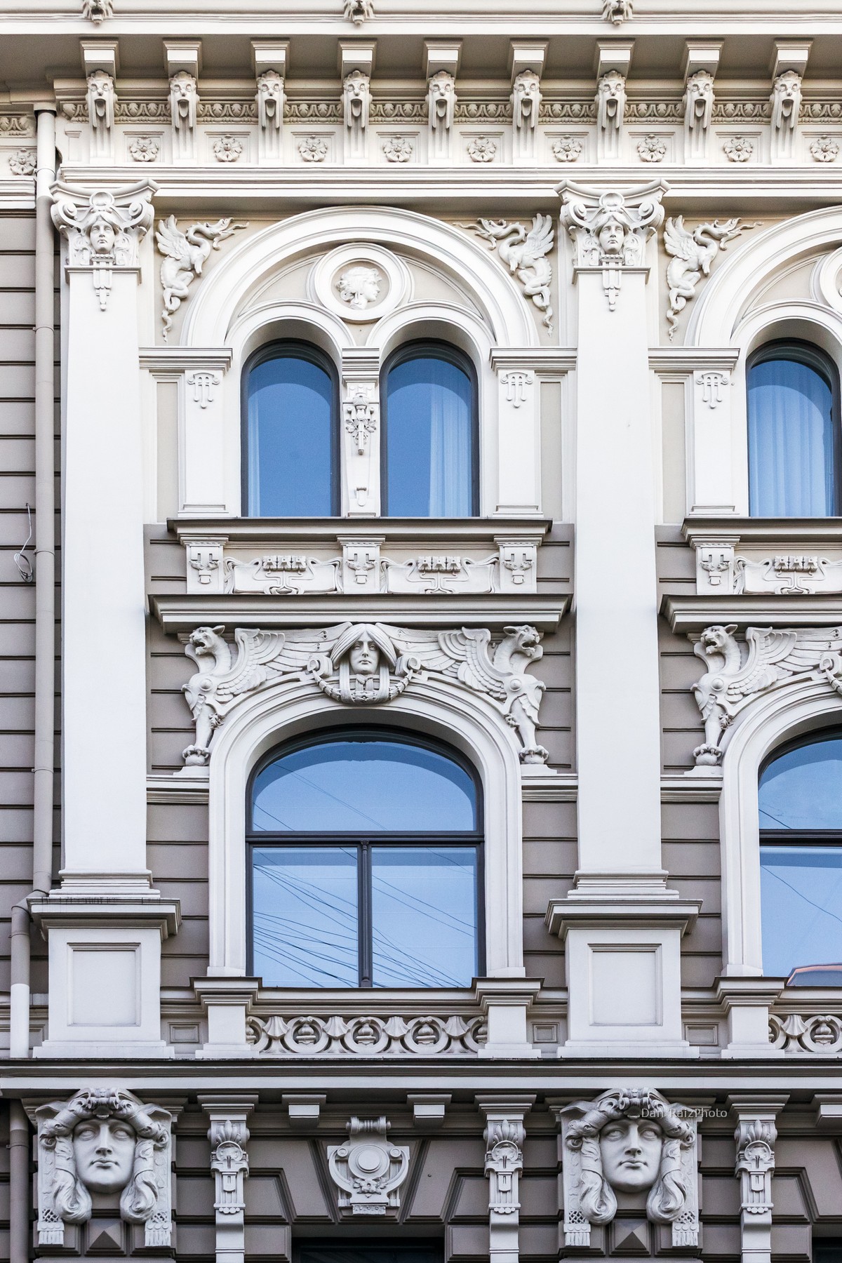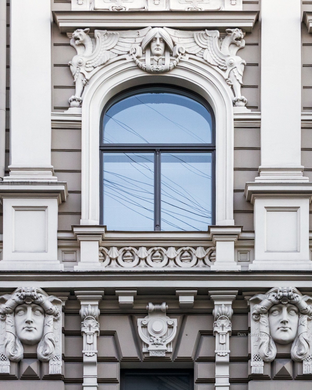 The facade is an explosion of stone symbolism. It is most famous for the enormous female heads at the very top, which seem to guard the building. You will also find an array of mythological figures: