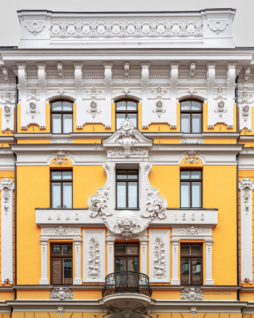 “Built in 1899, the house at Vīlandes iela 11 is a stunning example of Eclectic architecture in Riga. Designed by Rudolf Heinrich Zirkvics, the building combines Neo-Baroque forms with early Art Nouveau decorative elements.
